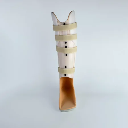 KAFO provides complete support from the foot to the knee. It’s designed for individuals with lower limb weakness or paralysis to improve standing balance and walking ability.