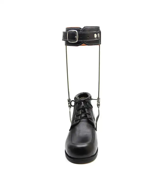 This orthosis features a metal frame with leather components, providing sturdy support for the ankle and foot. Ideal for individuals with foot drop or partial paralysis.